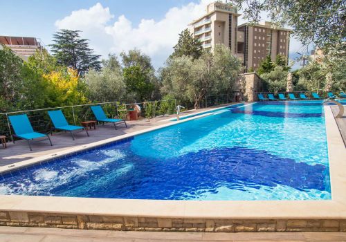 features both saltwater and freshwater swimming pools