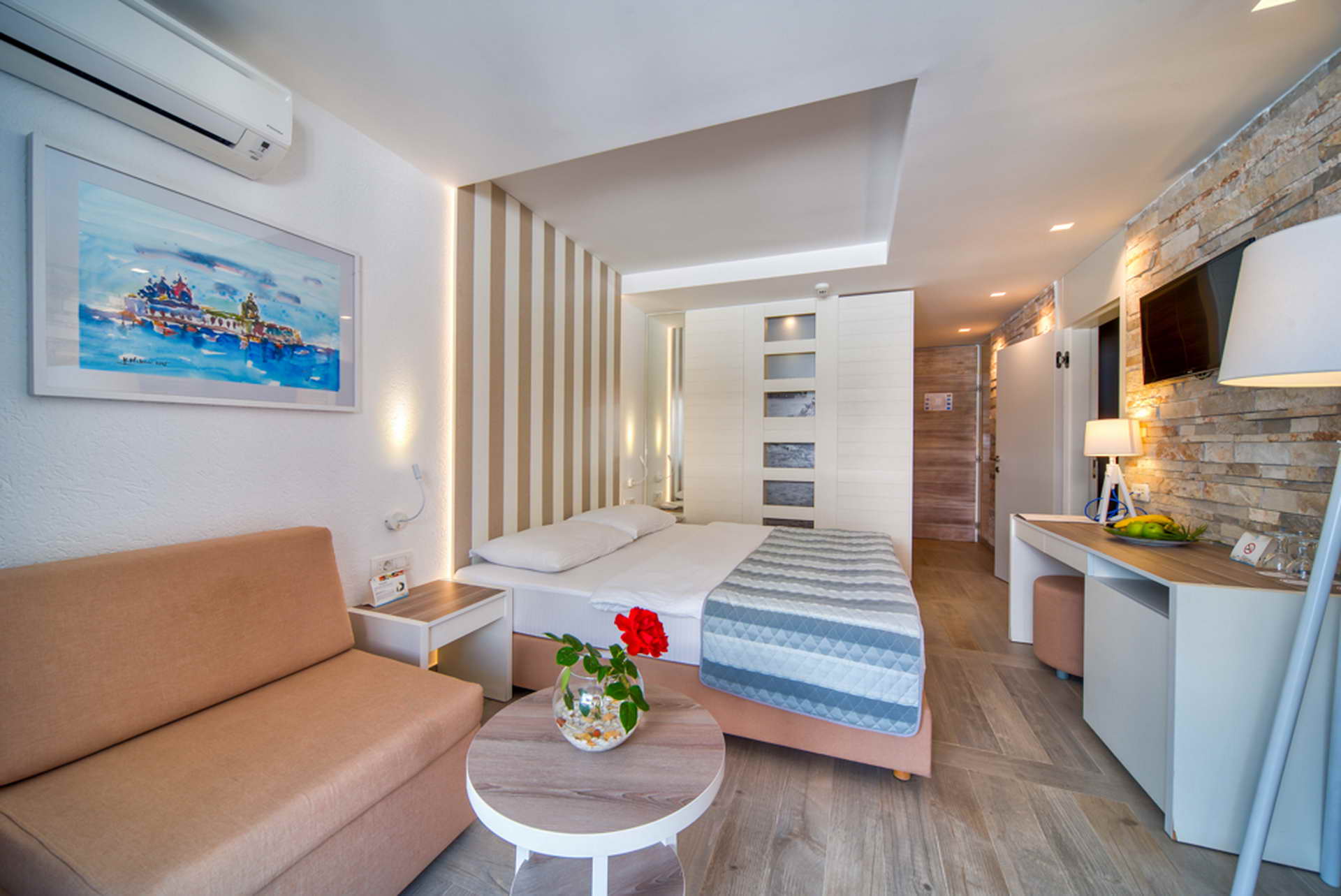 Comfortable rooms with modern design and wonderful balconies in the Mediterranean style offer our guests an atmosphere and relaxation with their simplicity.