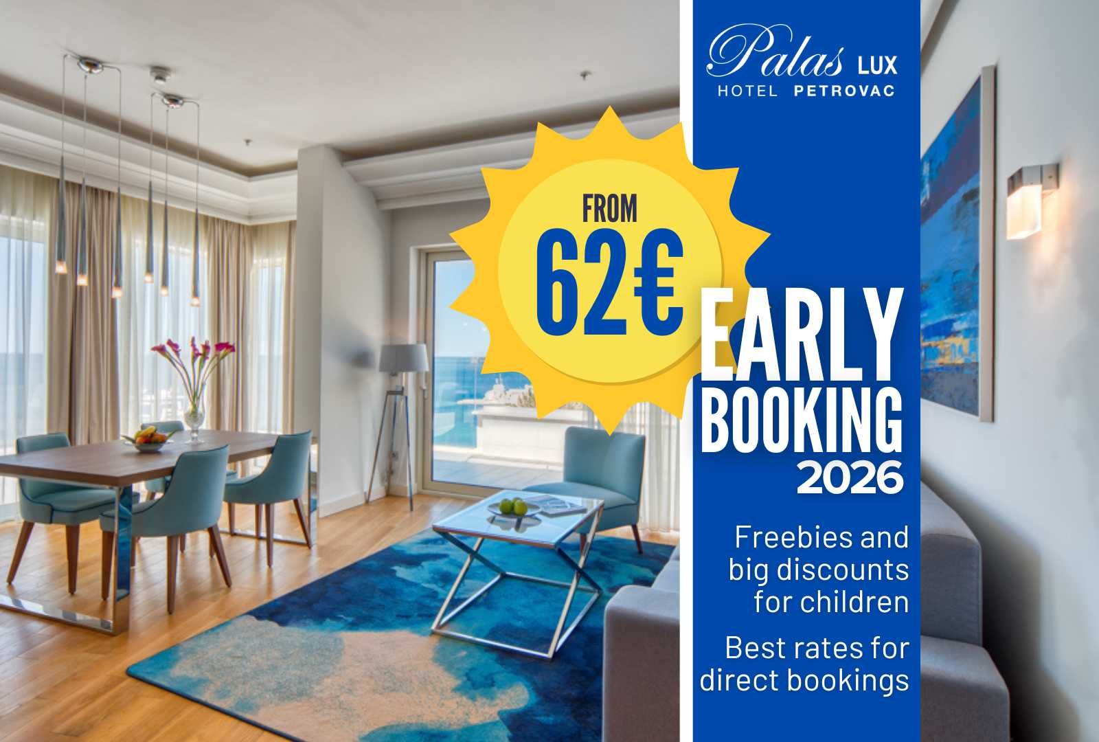 Special price discount applies to all types of accommodation units, while special discounts for children accompanied by two adults apply exclusively to stays in double rooms